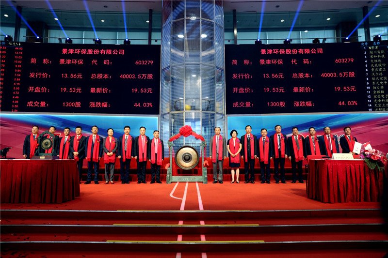 7月29日上午9:30分,随着开市祥锣敲响,景津环保股份有限公司(证券简称“景津环保”,股票代码:603279)正式在上海证券交易所主板上市,标志着景津环保的发展迈出了历史性的一步。德州市委书记陈勇先生、景津环保董事长姜桂廷先生共同为景津环保股票交易鸣锣开市。